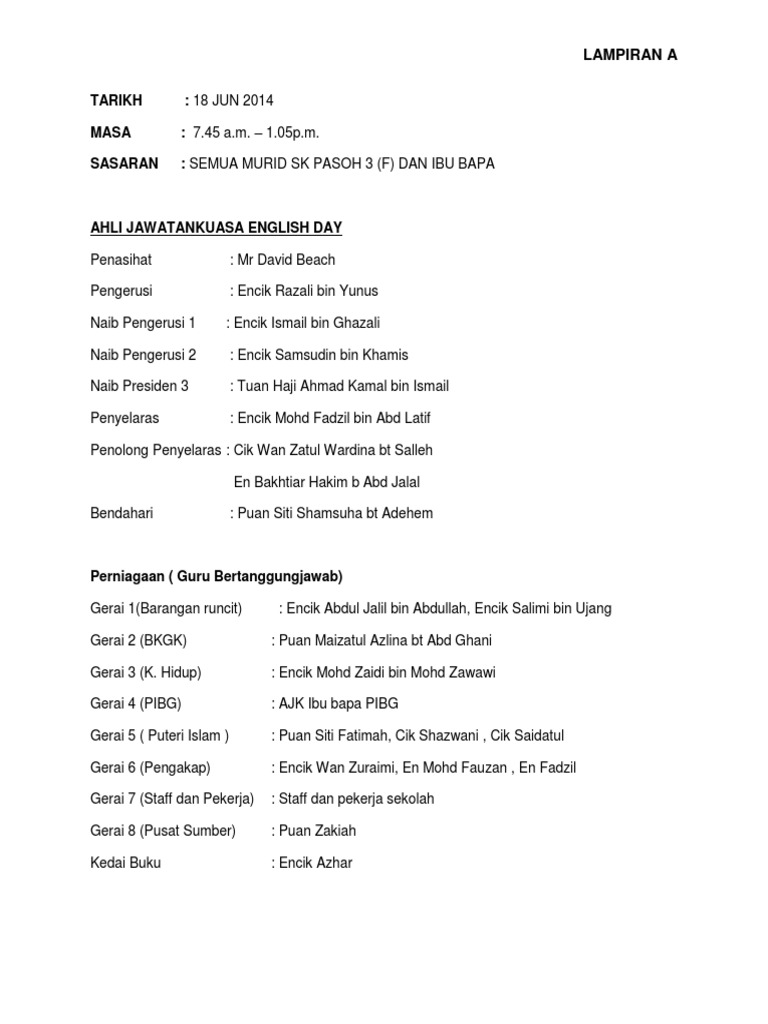 High, scouts, highest, committee, top level, accompanied malay. Yang berhormat mejar jeneral (b) dato paduka seri haji aminuddin ihsan bin pehin orang kaya saiful mulok dato seri paduka haji. Polis menyoalsiasat ahli jawatankuasa sebuah kelab persendirian di kuala terengganu di mana raja petra kamarudin dijemput oleh salah seorang seorang lagi ahli jawatankuasa itu, adun selinsing, husin din telah disoal oleh sprm di rumahnya pada 17 mac lalu manakala sivakumar telah memberi. Jawatankuasa papers and research , find free pdf download from the original pdf search engine. Pusat khidmat adun padang lalang, no 30, tingkat 1, jalan betik, taman betik manis, 14000 bukit mertajam, penang, malaysia.